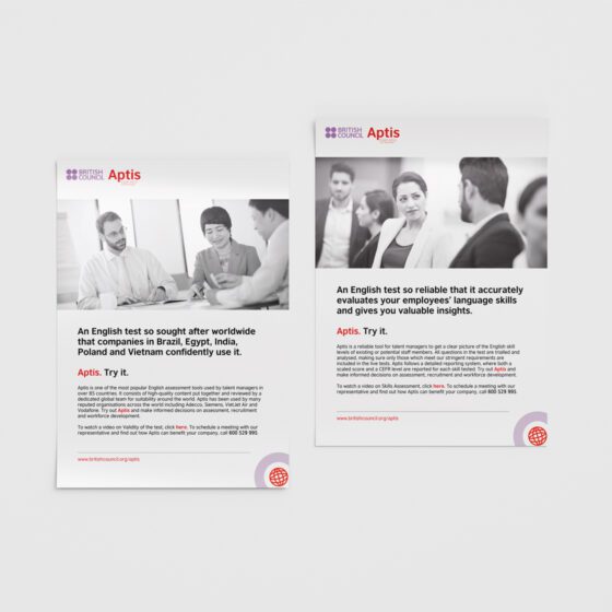 We developed a strategic B2B communication plan, complete with a mapped customer journey and targeted outreach. A suite of promotional materials tailored for HR and training heads highlighted Aptis’ flexibility, accuracy and ease of integration within institutional assessment systems.