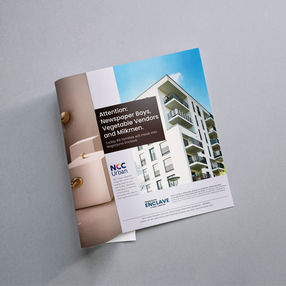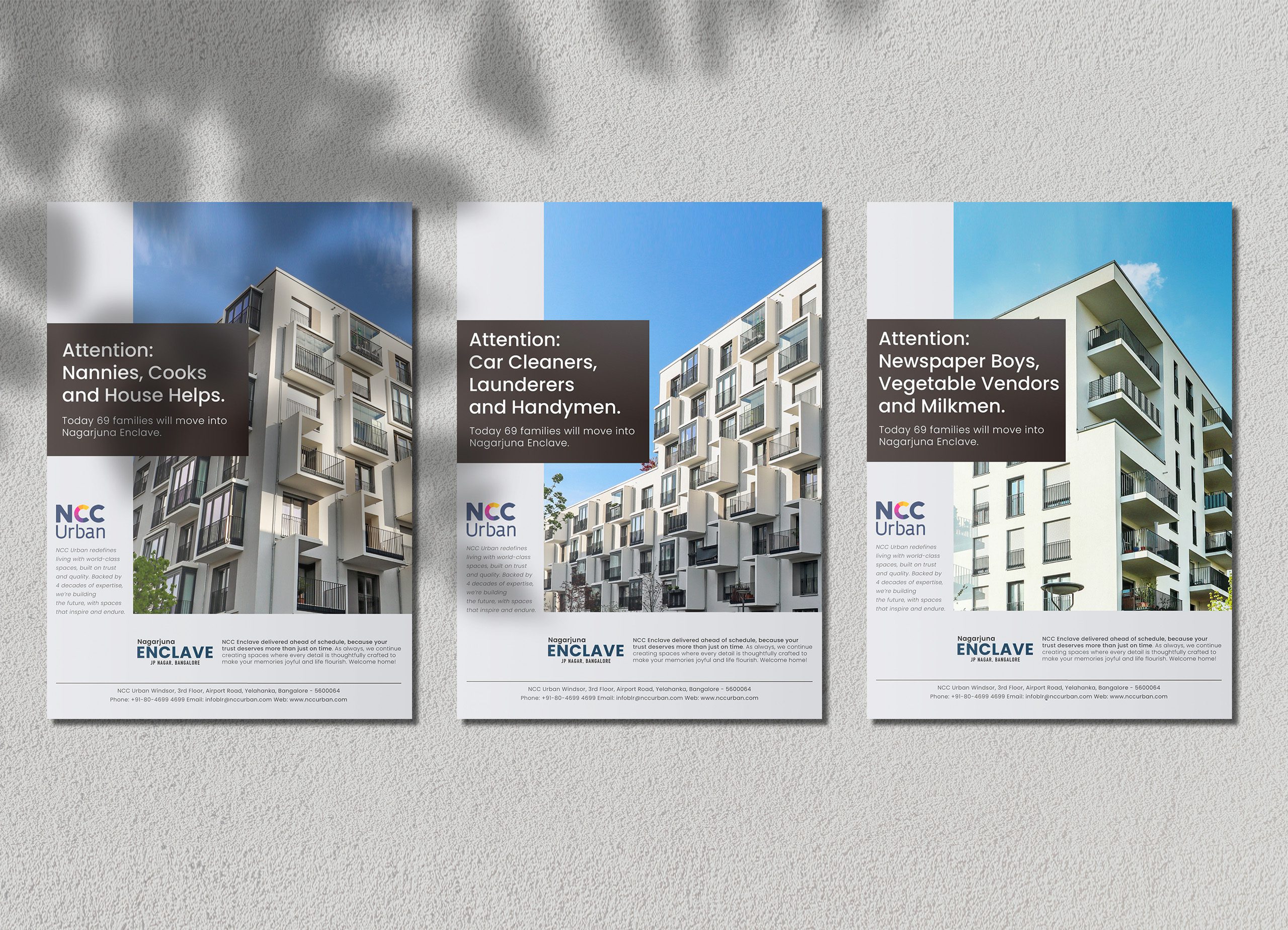 Reinforce NCC Urban’s (Nagarjuna Developers) reputation for on-time project delivery – a rare achievement in Bangalore’s delay-prone real estate market. The goal was to celebrate the early handover of Nagarjuna Enclave in a way that stood out, yet remained rooted in everyday relevance.