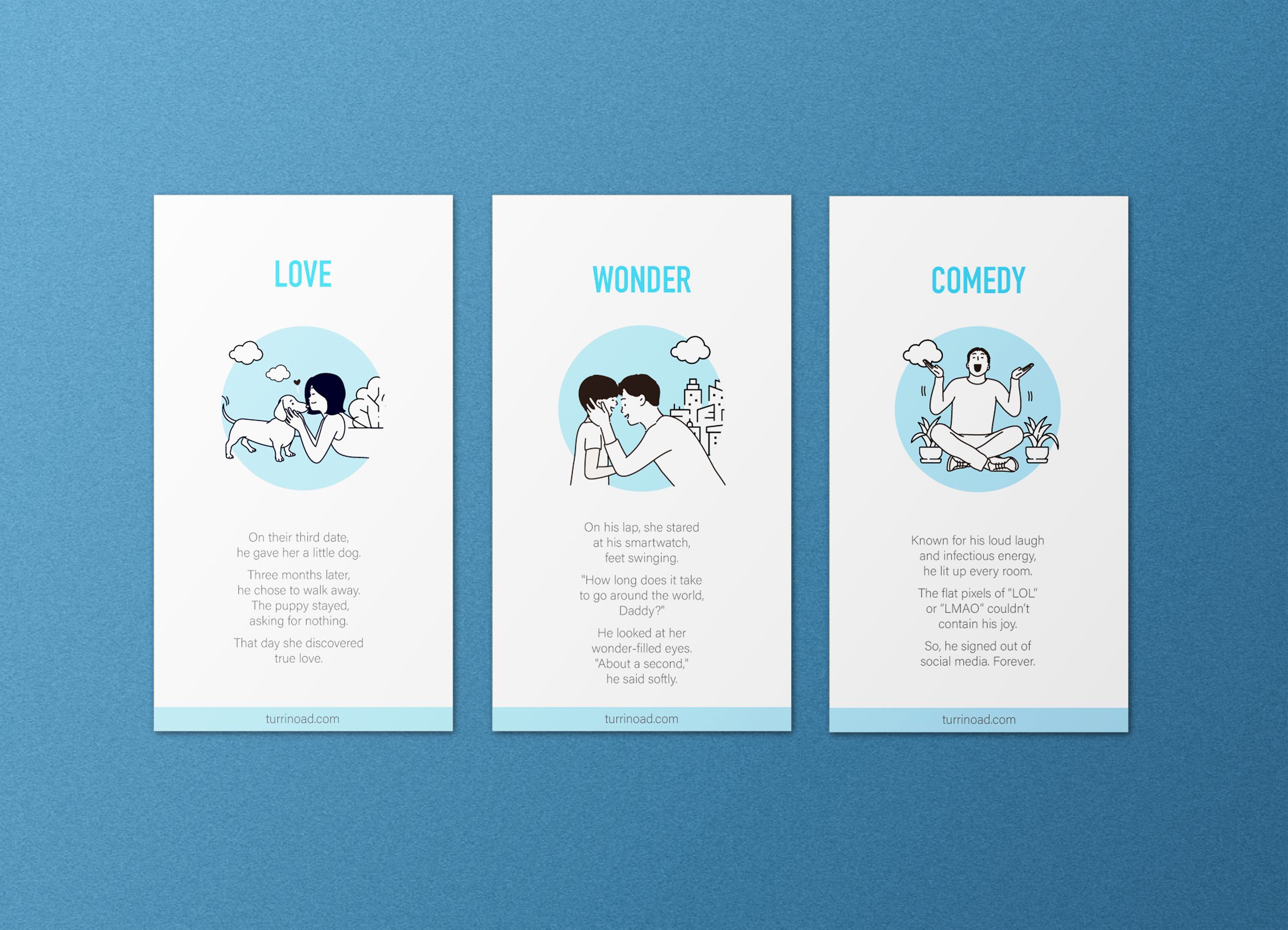 The mailer stood out for its originality and emotional depth, leaving a lasting impression on recipients. The micro-stories led readers to the very emotions that drive loyalty, powerfully reinforcing Turrino’s positioning as an agency that understands people deeply and builds brands through genuine emotional connection.